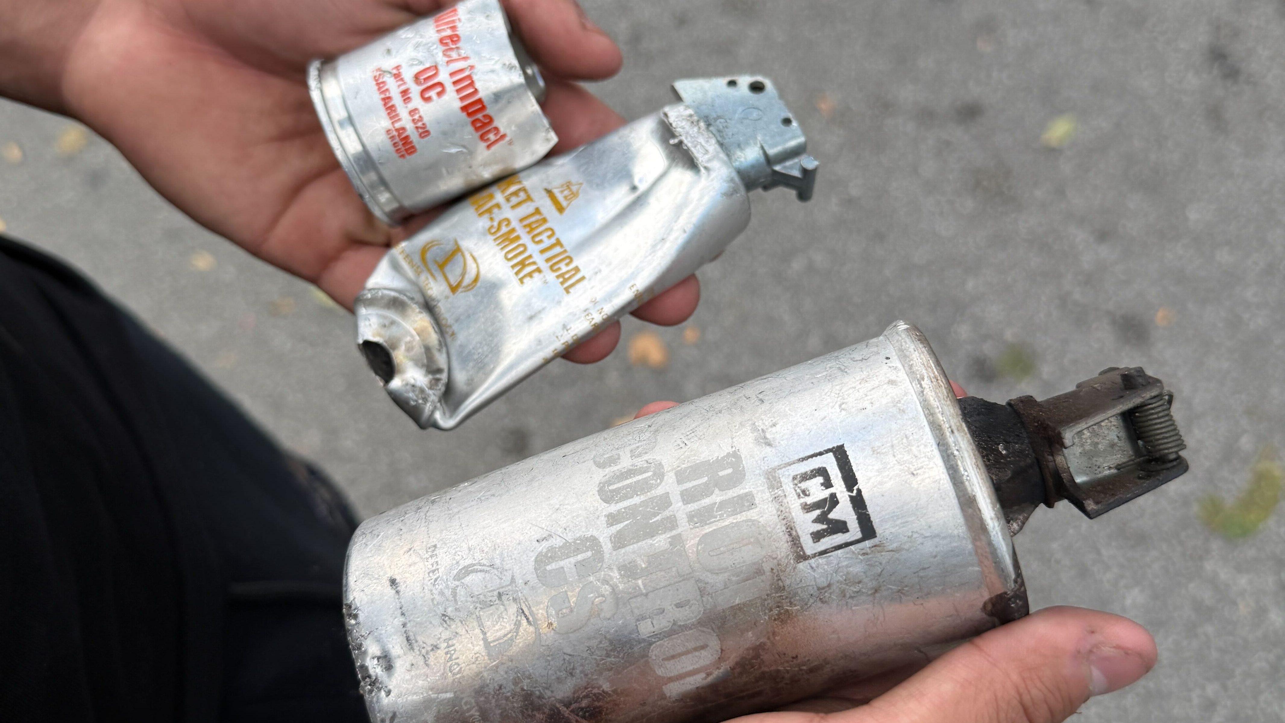 The footage showed smoke rising from an intersection near the scene. A canister labeled “riot control” was later found at the scene along with other materials labeled “tactical smoke.”