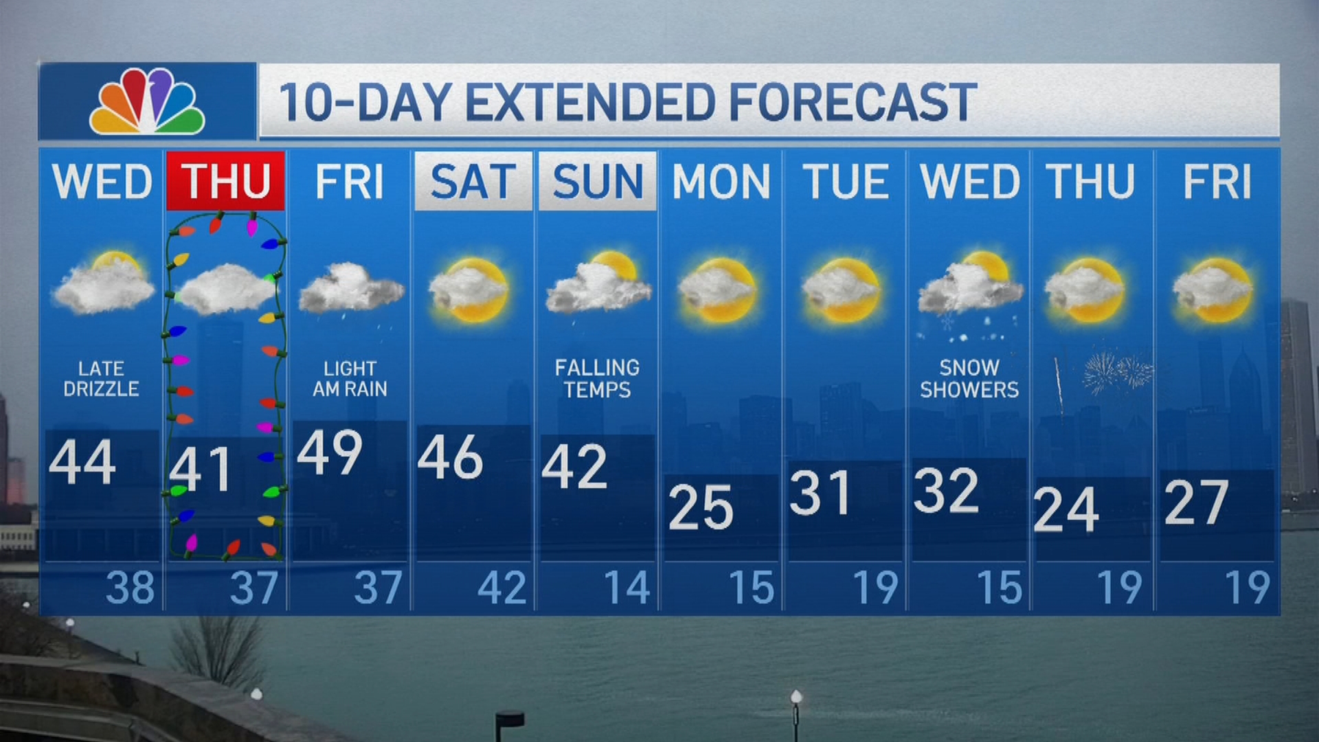 Thursday, Christmas Day, will see more clouds overhead and a few sprinkles, Jeanes said, with above-average high temperatures around 40 degrees.