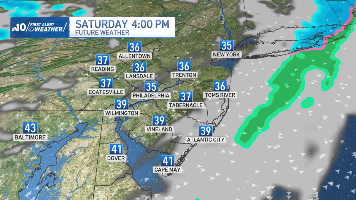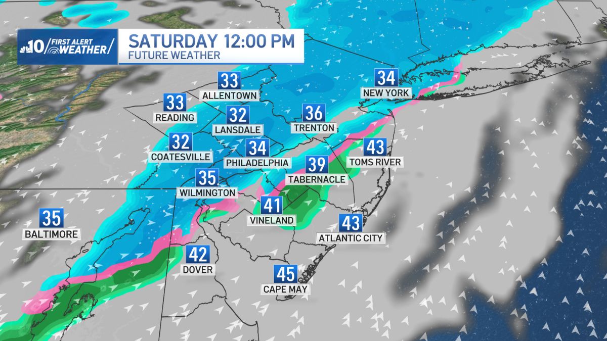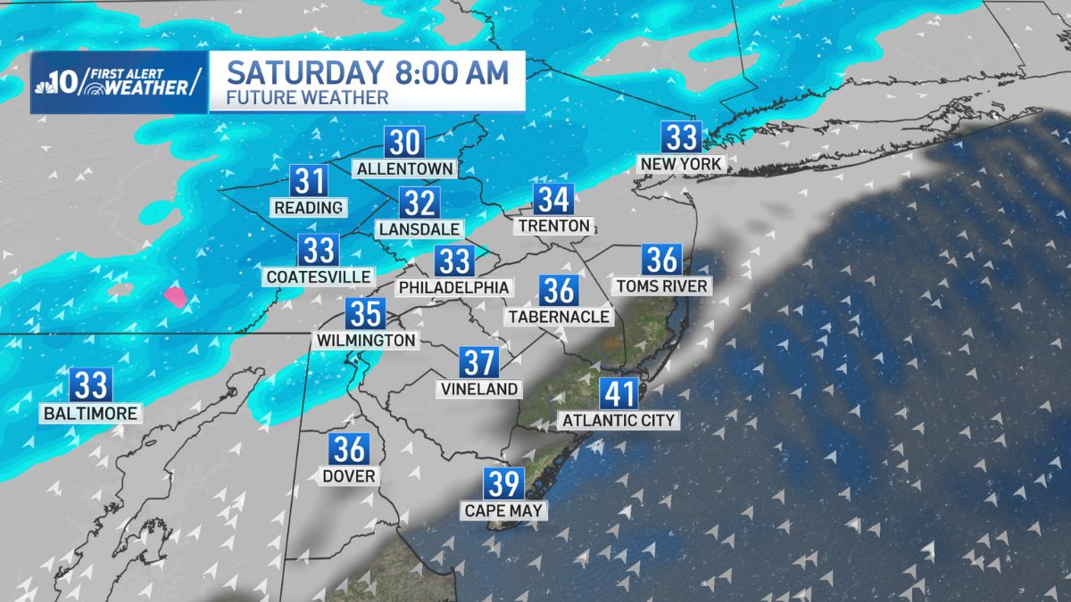 Snow showers arrive around 7 a.m. for the Pennsylvania Suburbs, Berks County and the Lehigh Valley and persist into the early afternoon.