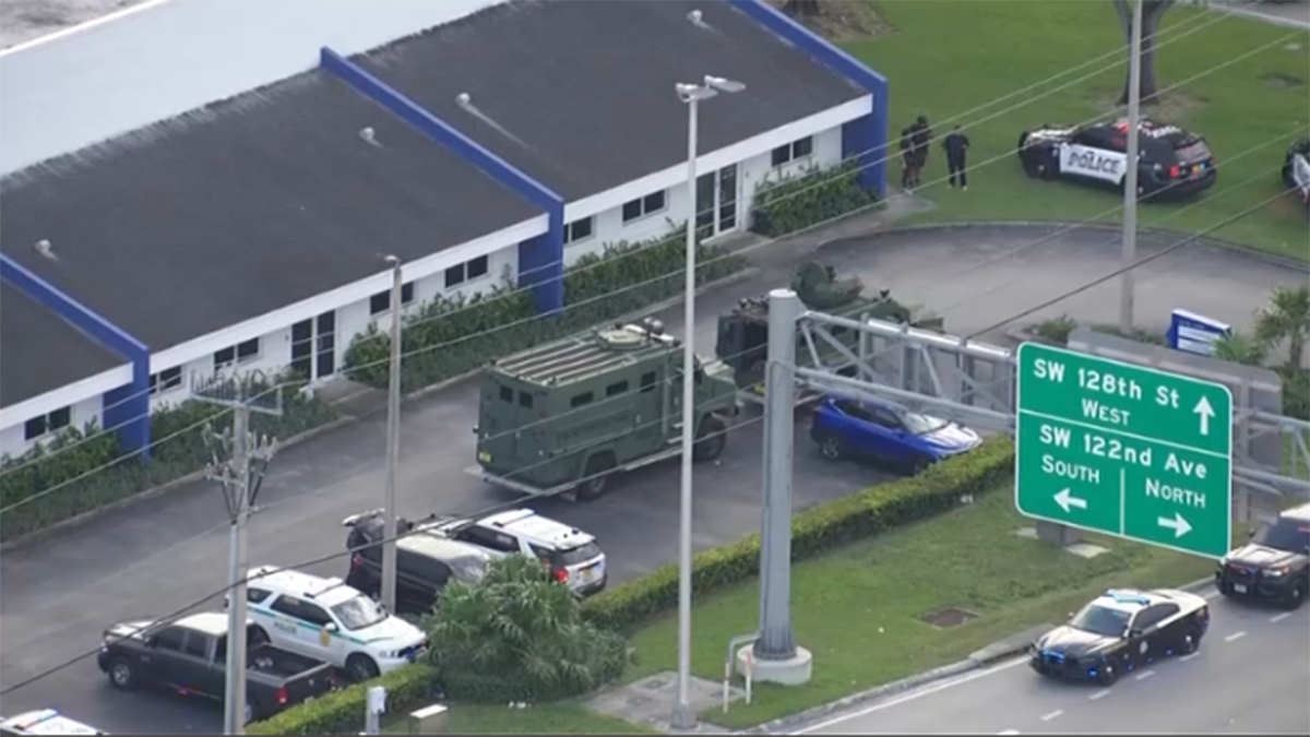 Video posted by Only in Dade showed law enforcement responding to the scene earlier, some in defensive positions with weapons drawn.