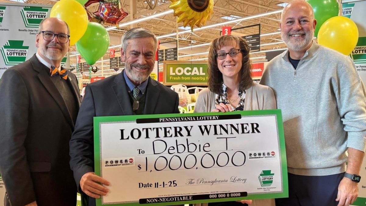 Officials from the Pennsylvania Lottery presented a commemorative check to the winner of a recent $1 million Powerball ticket, which was sold for the Saturday, November 1, drawing.