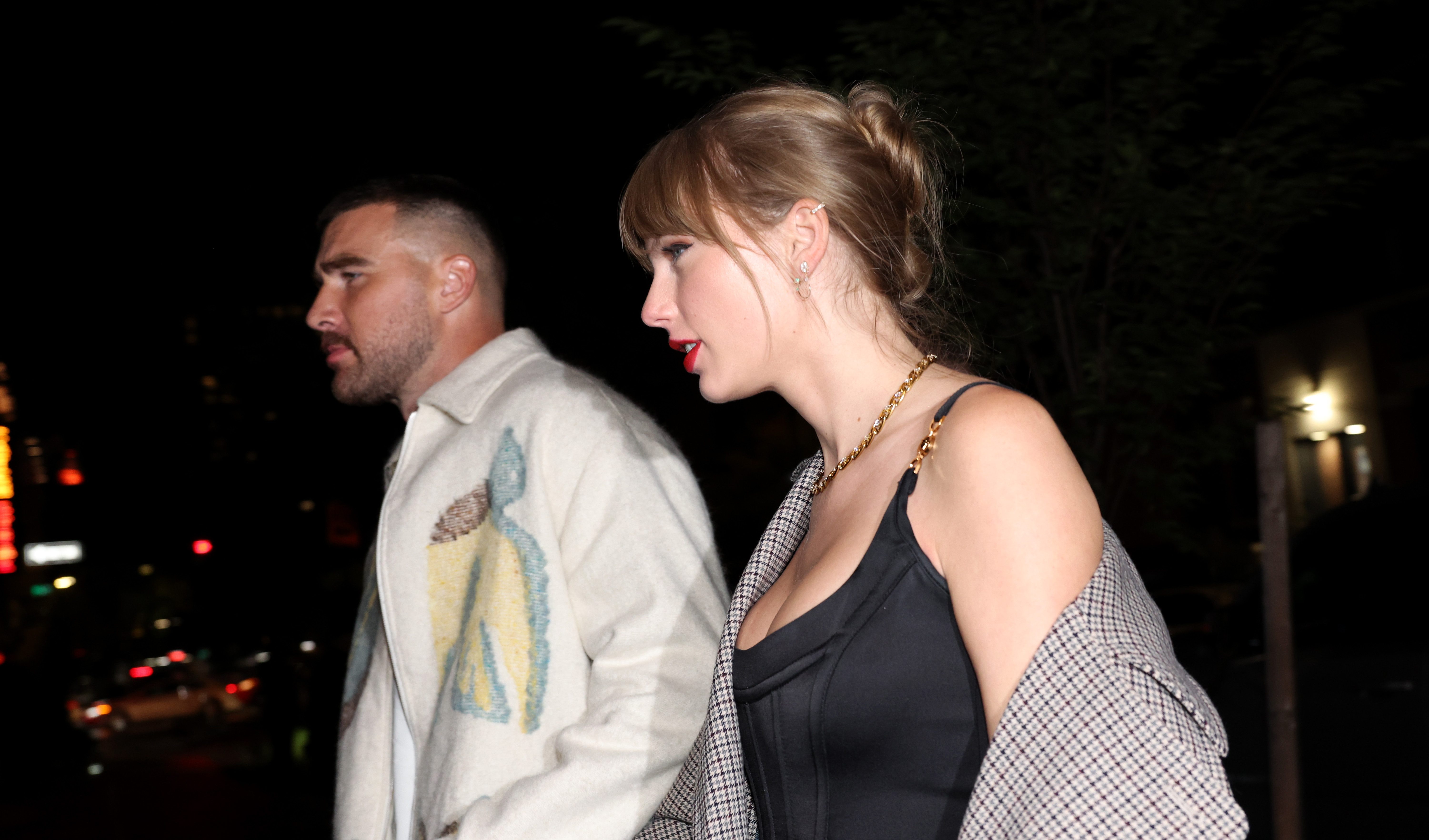 “This is my brand new album, ‘The Life of a Showgirl,’” Swift says as both Kelces shout in celebration.