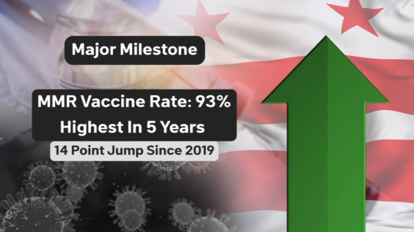 D.C. hit a major milestone, reaching its highest measles, mumps and rubella (MMR) vaccine rate in five years, with 93% of kindergarteners vaccinated. That represents one of the highest surges in vaccinations in the nation, with a 14-point jump since 2019.