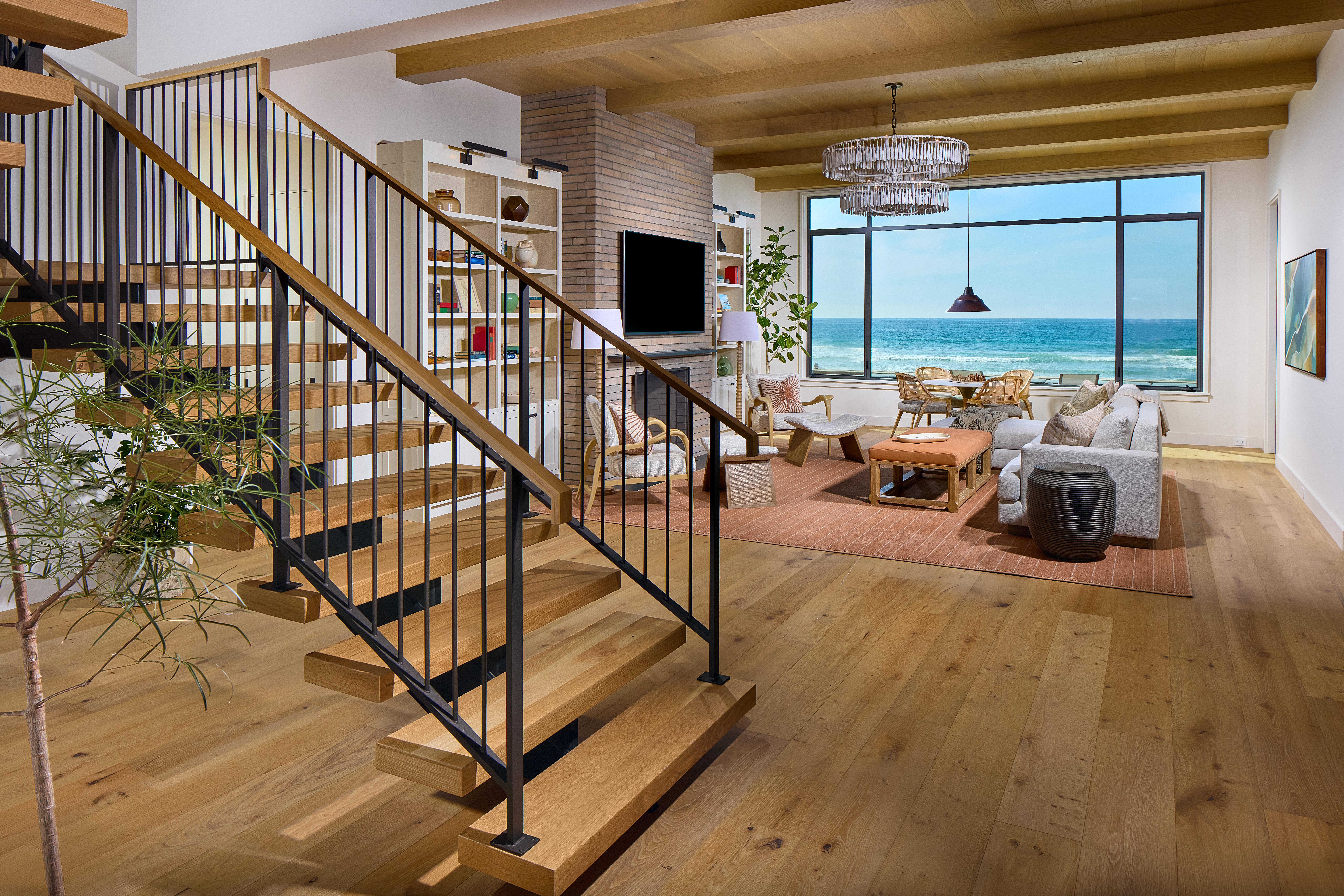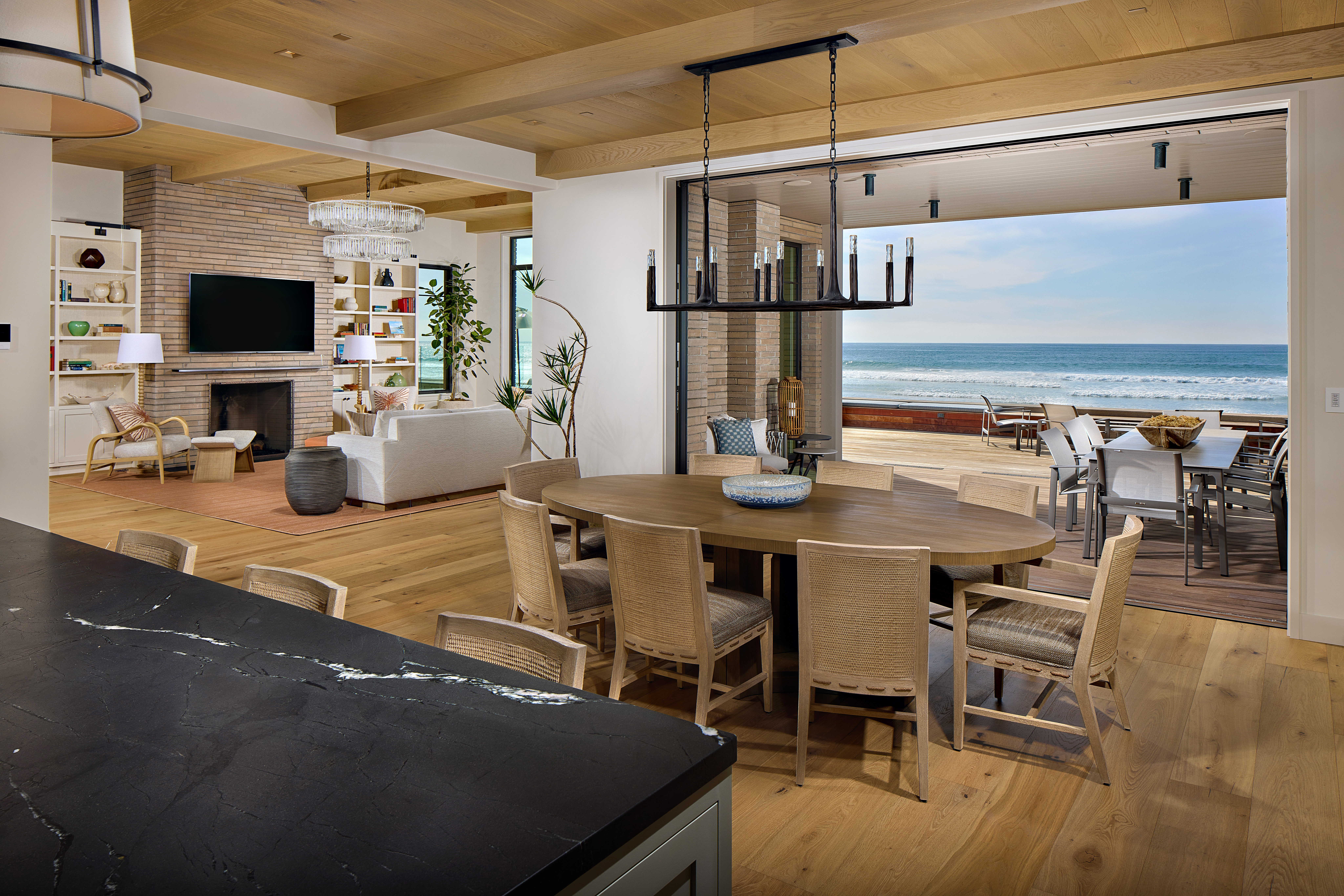Other amenities include a three-car garage (with parking on-site available for 10 vehicles), a “sand room” with beach storage, a saltwater pool and spa with an electric cover, beach access (natch) and a large, dog-friendly outdoor shower.